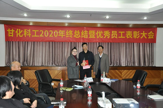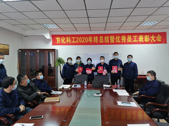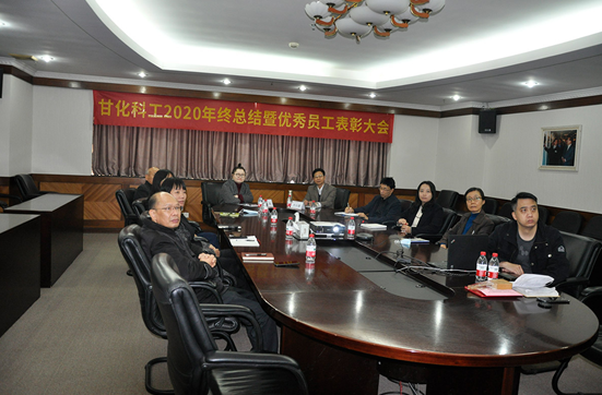 2021年1月21日下午,廣東甘化科工股份有限公司采用線上會議的方式同時連接上海、江門、成都、沈陽四個會場召開了2020年終總結暨優秀員工表彰大會。會議由副總裁李忠先生主持,甘化科工總裁施永晨先生、甘化科工副總裁兼四川升華總經理馮駿先生、沈陽含能總經理馬震峰先生和優秀員工代表分別發言。