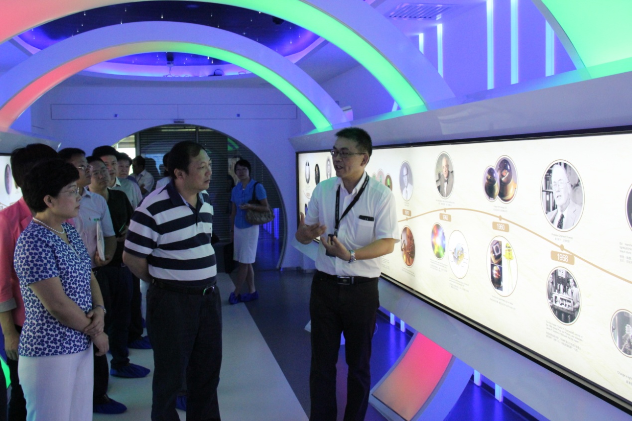 德力光電副總經理葉國光陪同胡功民及鐘軍副市長先后參觀了外延片、芯片生產車間及展廳,副總經理葉國光在參觀過程中介紹了公司的產品、生產工藝、行業優勢等相關情況。胡功民對我公司的技術表現出了濃厚的興趣。